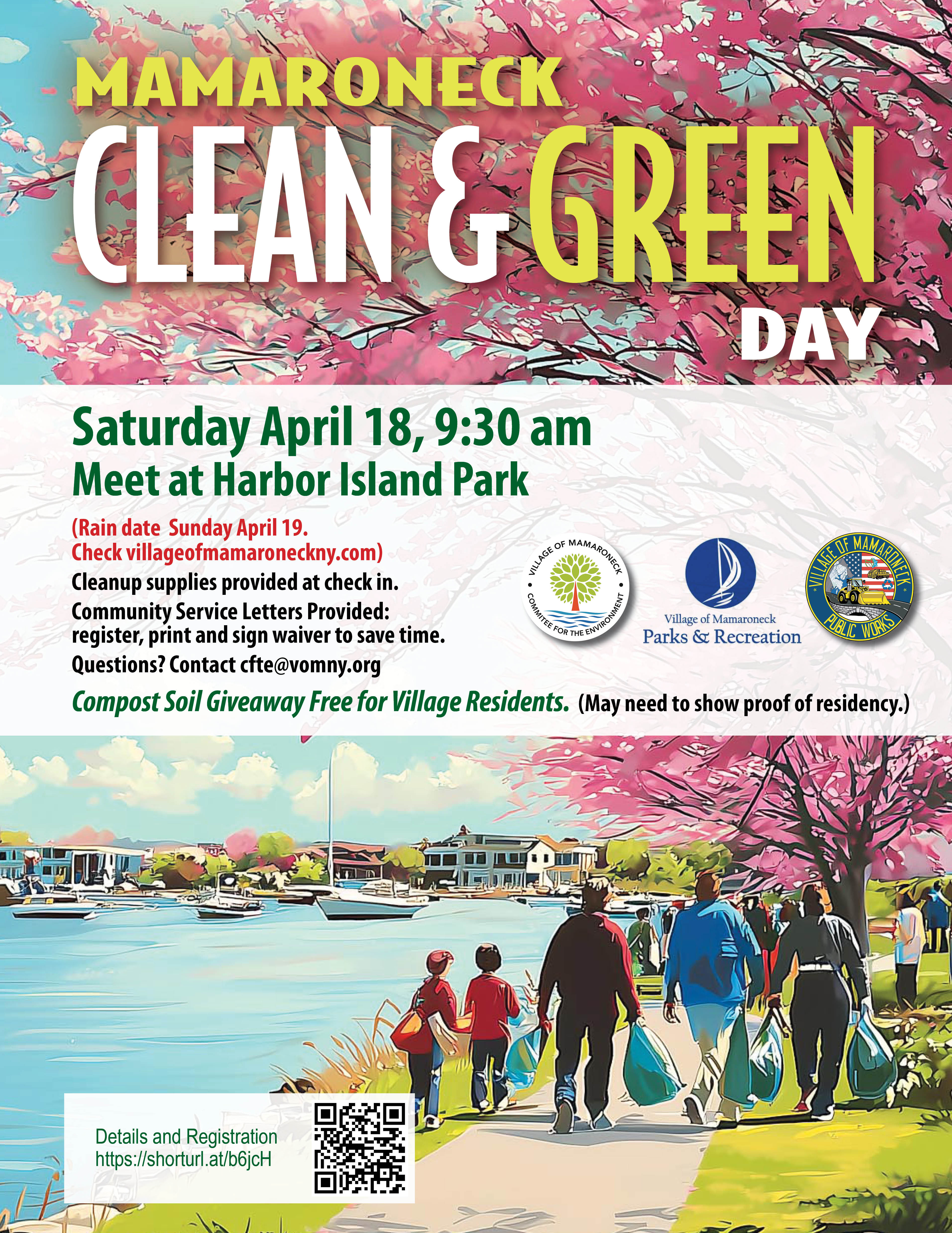 The Village of Mamaroneck invites residents, families, and community groups to join Mamaroneck Clean & Green Day, a community-wide cleanup event to help freshen up our parks and neighborhoods for spring.